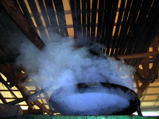 【竹酢液採取機】 窯から昇る約80℃から150℃の蒸気を集めます。
